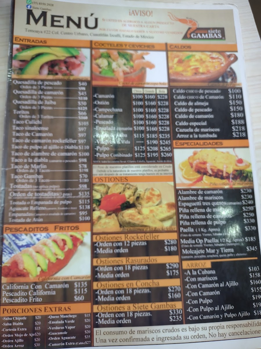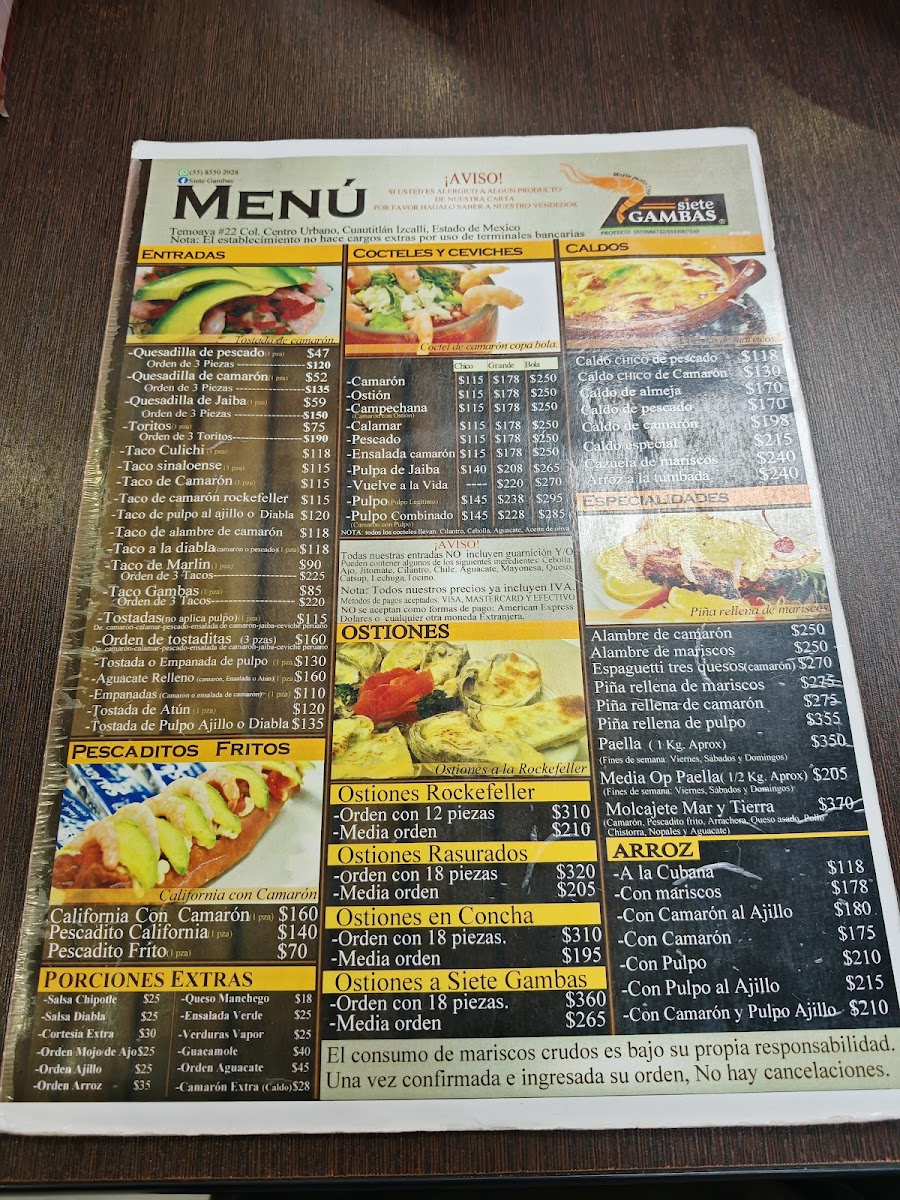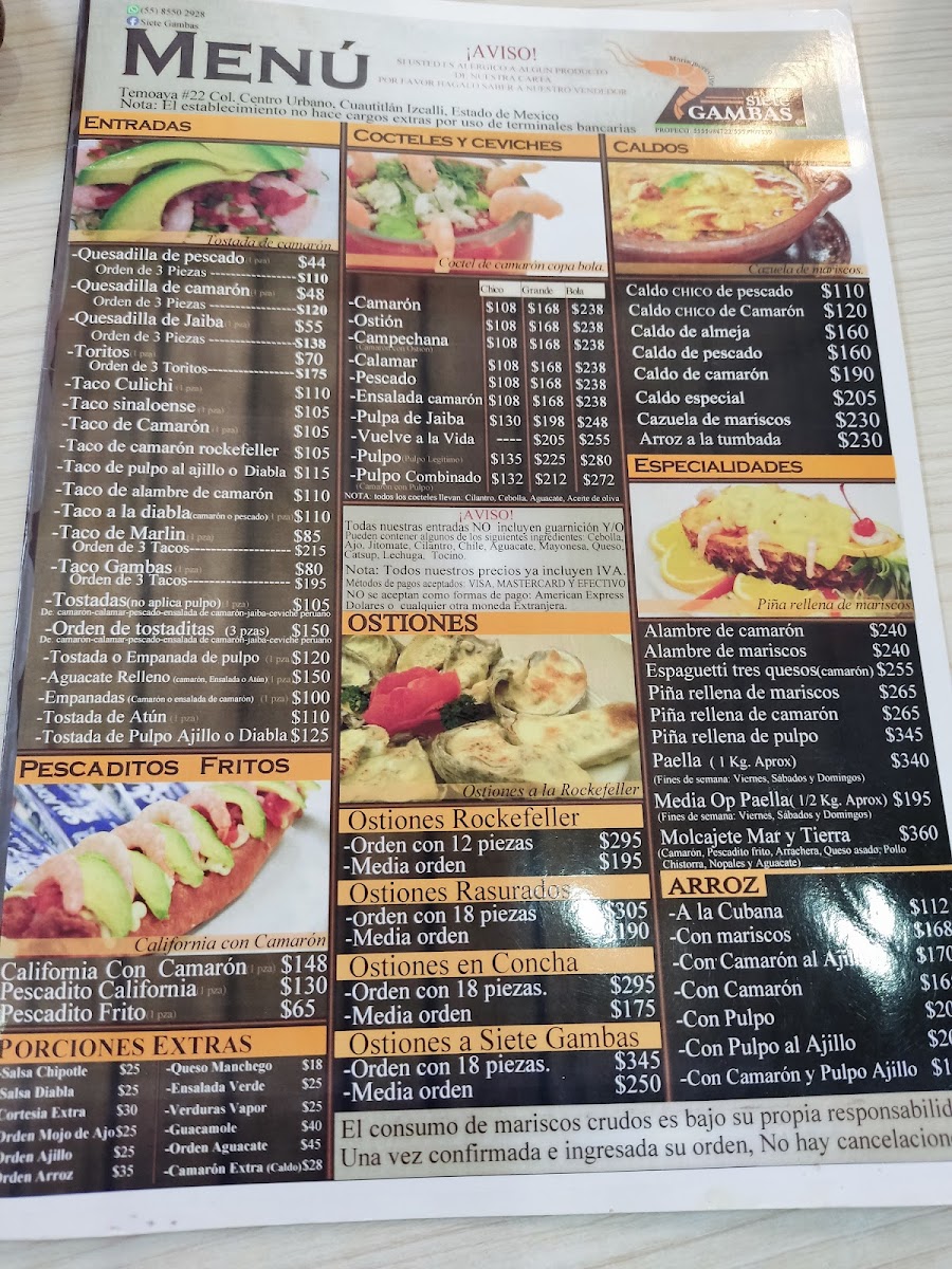 Welcome to Siete Gambas, a gem located in Cuautitlán Izcalli, where seafood lovers find their paradise. The moment you step in, you are embraced by a fresh and relaxed atmosphere, perfect for indulging in delightful seafood.